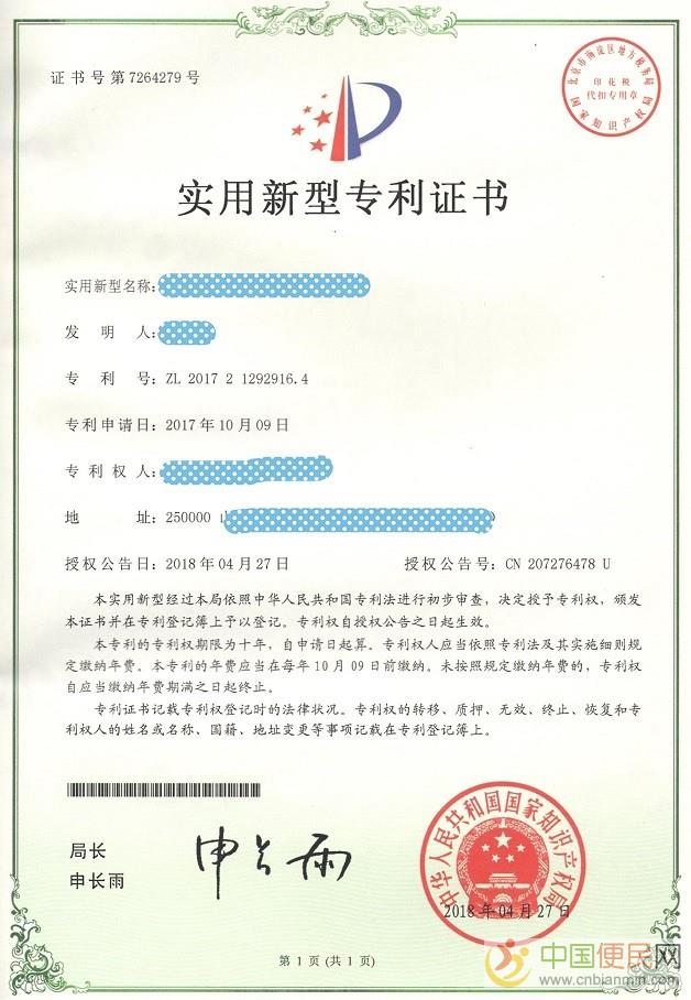 实用新型和外观设计专利申请经初步审查没有发现驳回理由的,由国务院专利行政部门做出授予实用新型或外观设计专利权的决定,发给相应的专利证书,同时予以登记和公告。实用新型和外观设计专利权自公告之日起生效欢迎www.cnbianmin.com。